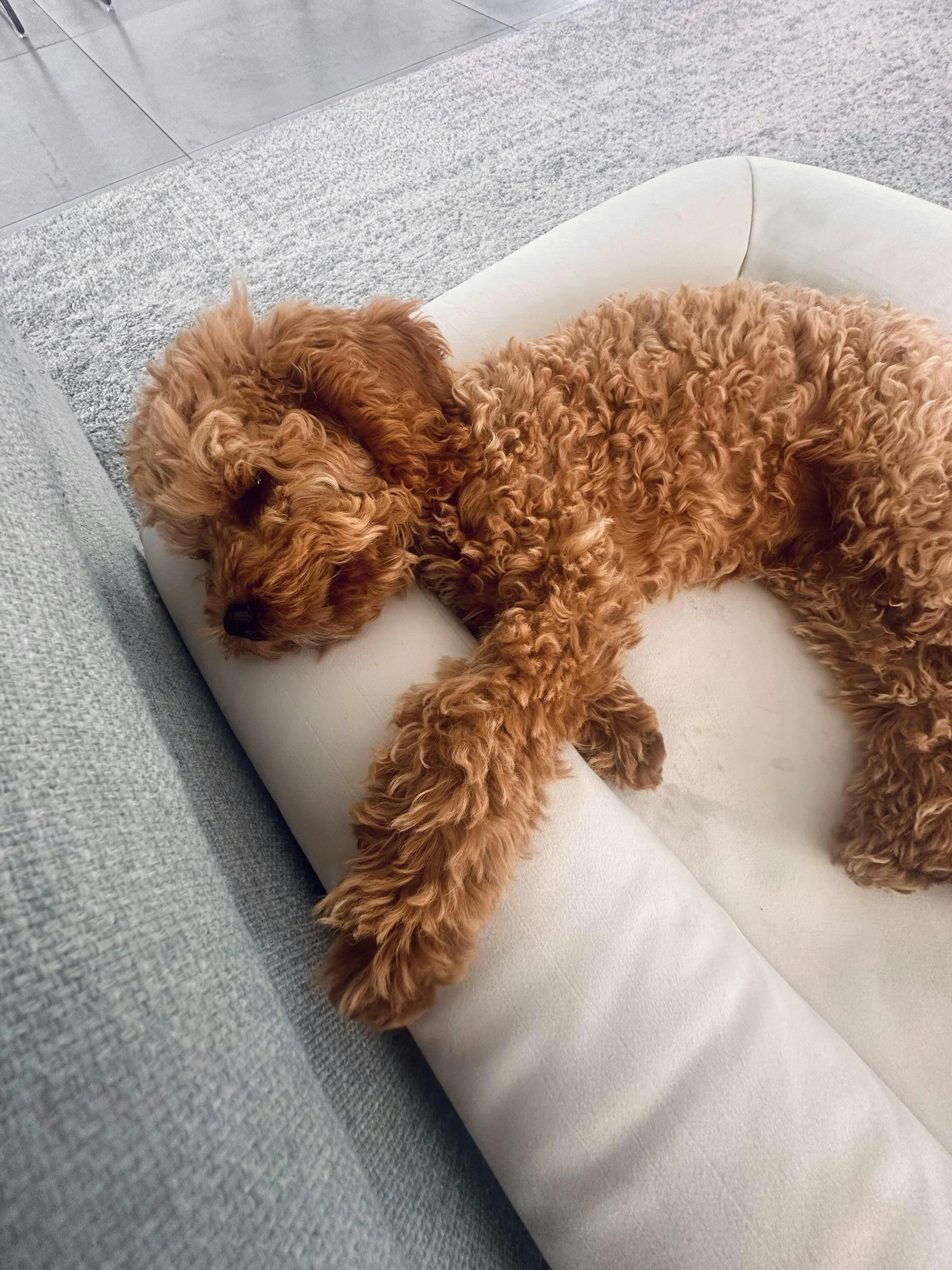 Chewie the Toy Poodle (3.5kg) sleeping in the Small Barney Bed.