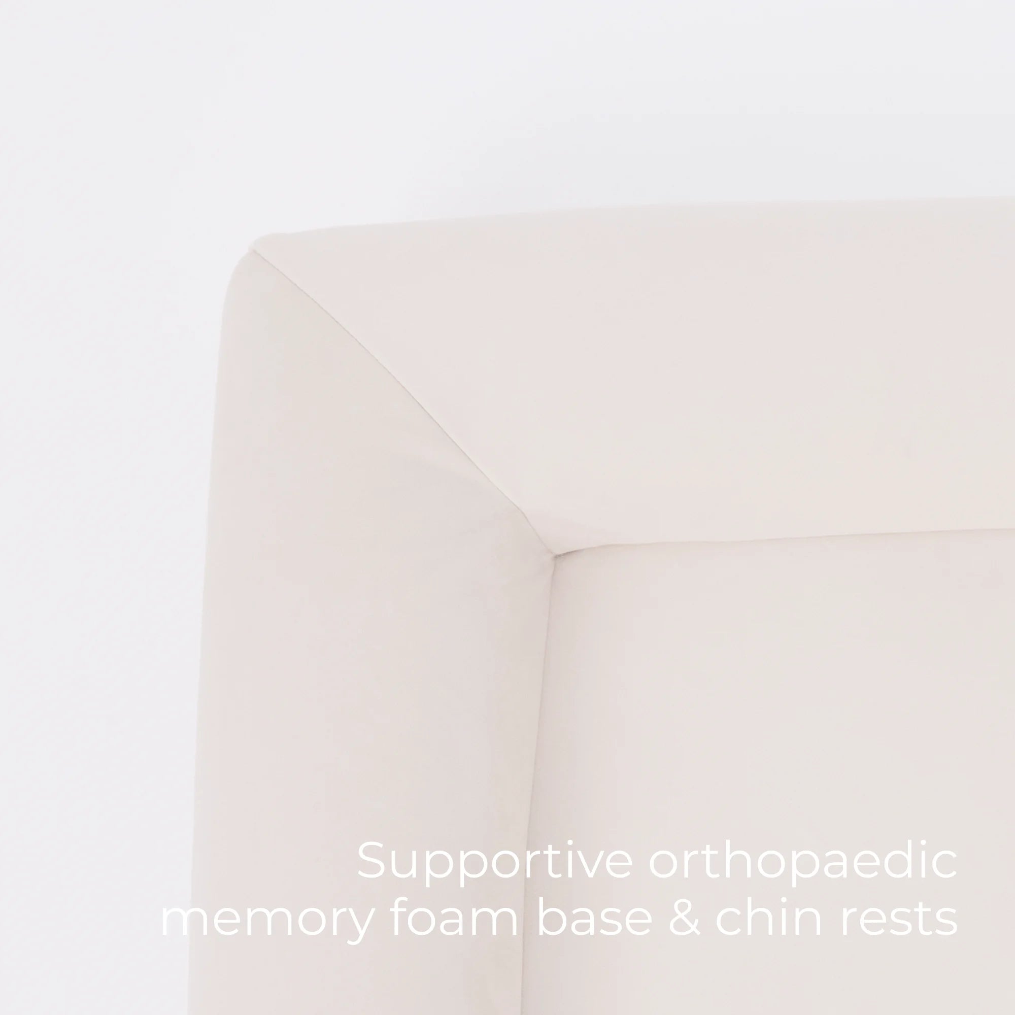 The bolsters are made from 100% high-density memory foam for comfortable and supportive chin rests that are backed by our 10-Year No-Sag Guarantee. Our memory foam is free of harmful chemicals and contains no formaldehyde.