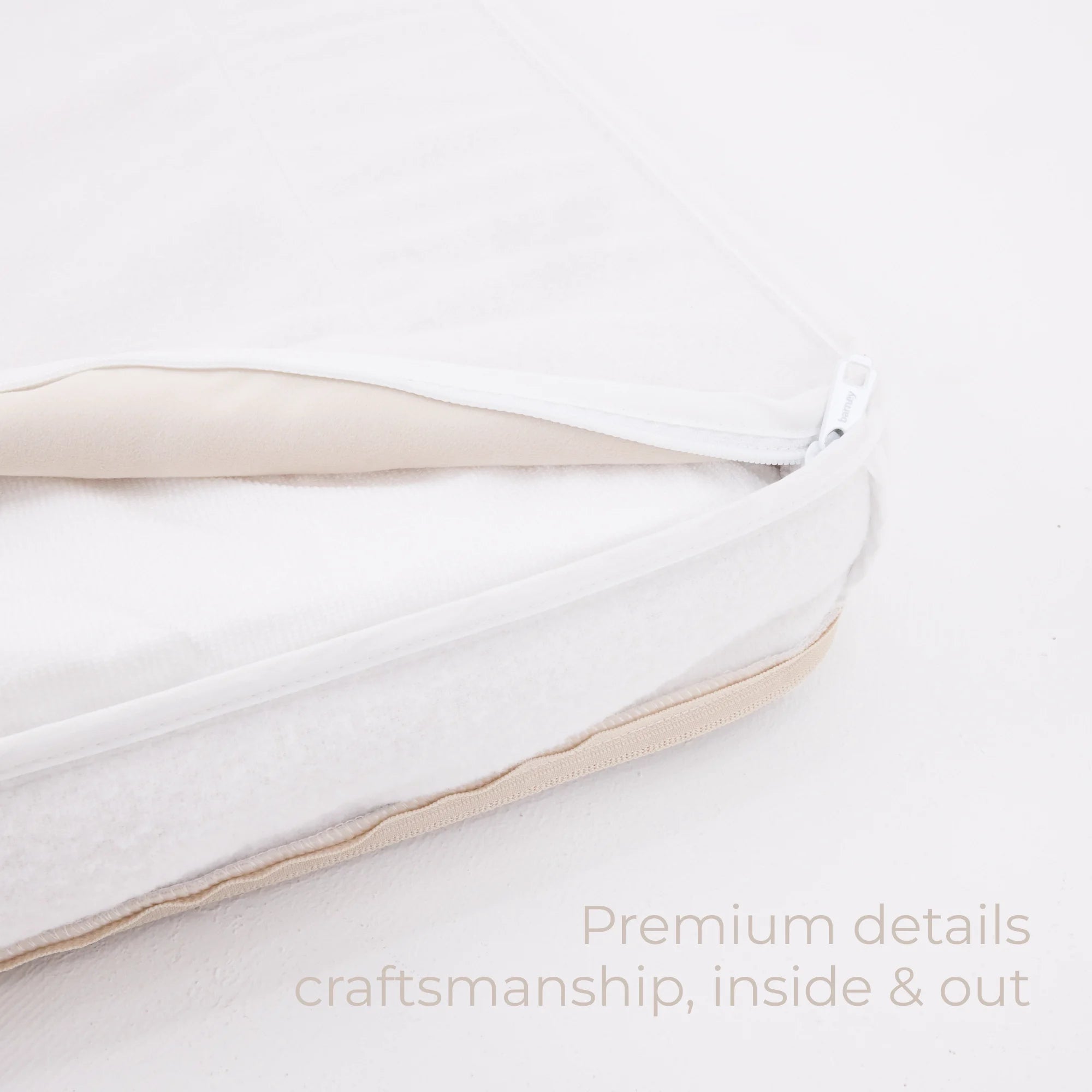 At its core is CertiPUR-US® certified high-density memory foam, providing superior orthopaedic support to relieve pressure on joints and bones and ensure the deep, restorative sleep your dog deserves. Our Barney+ range features our much-loved Chin Rest, thoughtfully designed for your dog to rest their chin in complete comfort. Every bed now features a 100% waterproof lining, providing complete protection from accidents and any dampness - because we know dogs aren’t always the cleanest! The cover is made from our exclusive, super soft, luxurious microfibre, which is machine washable and easy to spot clean between washes. A non-slip base keeps the bed securely in place - even during zoomies. Our own premium YKK zips make washing effortless, while a zip hood keeps it protected from curious dogs.