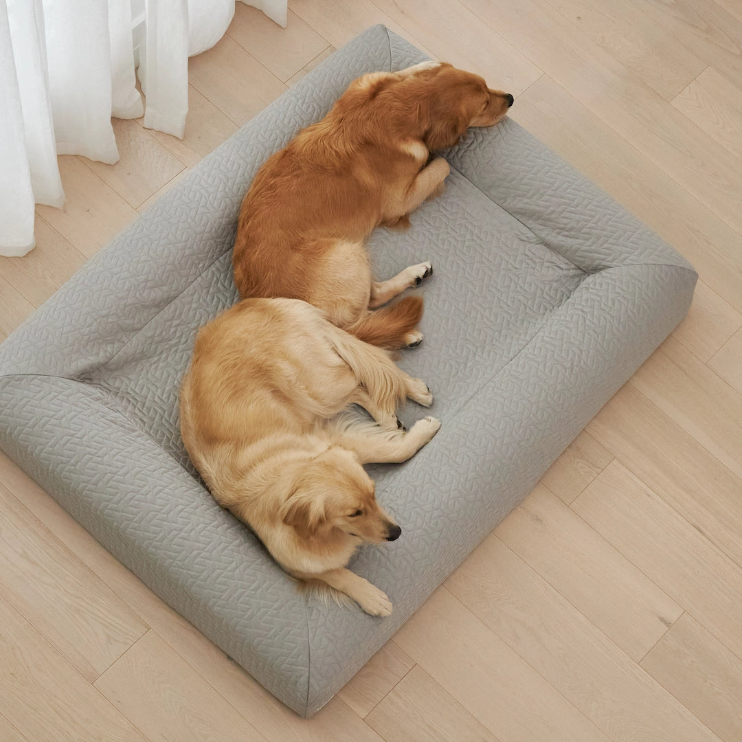 The dogs are enjoying their cool cover. Both Bernedoodles & one runs hot. Love the removable washable covers!