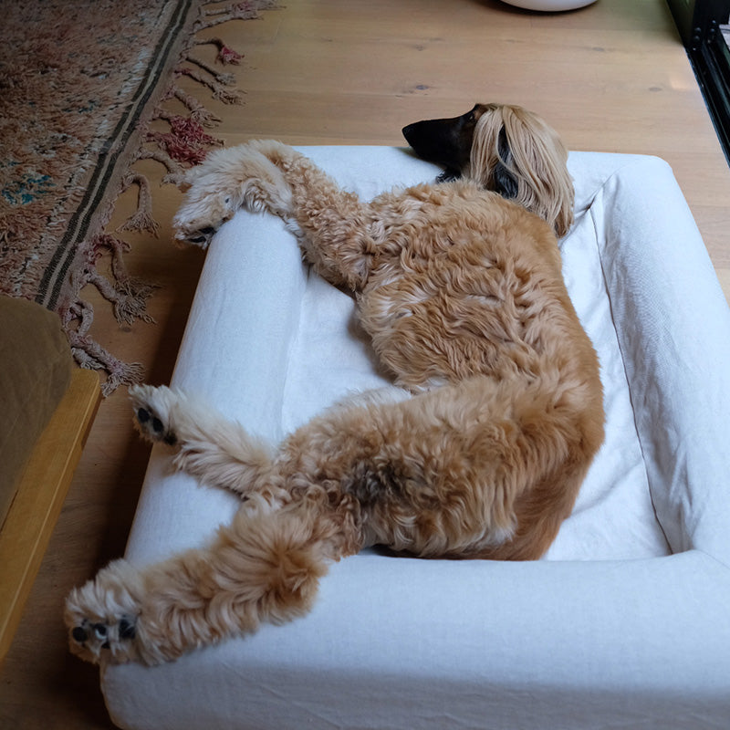 Made from 100% natural flax linen in neutral but tonal, ‘Oat’ exudes effortless style. The Barney linen cover is designed with your convenience in mind - it pops on and off with ease for quick and convenient washing. The best thing about natural linen is how it gets softer and more comfortable with each wash, making it even more difficult to get your dog out of bed. Please note as linen is a natural fibre, it is more delicate than our other covers. If your dog tends to scratch their bed, we recommend choosing a different cover, as the natural linen is not suitable for scratching.