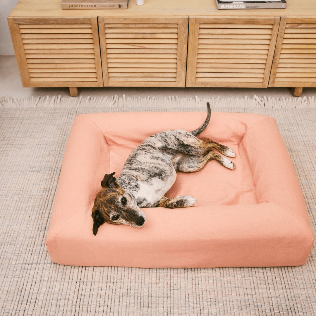 Transforming your dog's bed experience is easy with Barney Linen covers. Just like a fitted sheet, they're a breeze to put on and take off, thanks to the parachute elastic rim. Crafted from 100% flax linen, these covers are sturdy with a polyester backing. They're tailored to fit your Barney Bed perfectly – just choose the same size. Enjoy their cool and breathable feel, perfect for summer comfort. Plus, they're easy to fit with no zips, machine washable, and quick to dry. Please note as linen is a natural fibre, it is more delicate than our other covers. If your dog tends to scratch their bed, we recommend choosing a different cover, as the natural linen is not suitable for scratching.