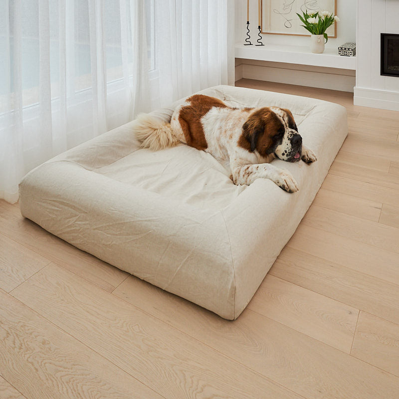 Transforming your dog's bed experience is easy with Barney Linen covers. Just like a fitted sheet, they're a breeze to put on and take off, thanks to the parachute elastic rim. Crafted from 100% flax linen, these covers are sturdy with a polyester backing. They're tailored to fit your Barney Bed perfectly – just choose the same size. Enjoy their cool and breathable feel, perfect for summer comfort. Plus, they're easy to fit with no zips, machine washable, and quick to dry. Please note as linen is a natural fibre, it is more delicate than our other covers. If your dog tends to scratch their bed, we recommend choosing a different cover, as the natural linen is not suitable for scratching.
