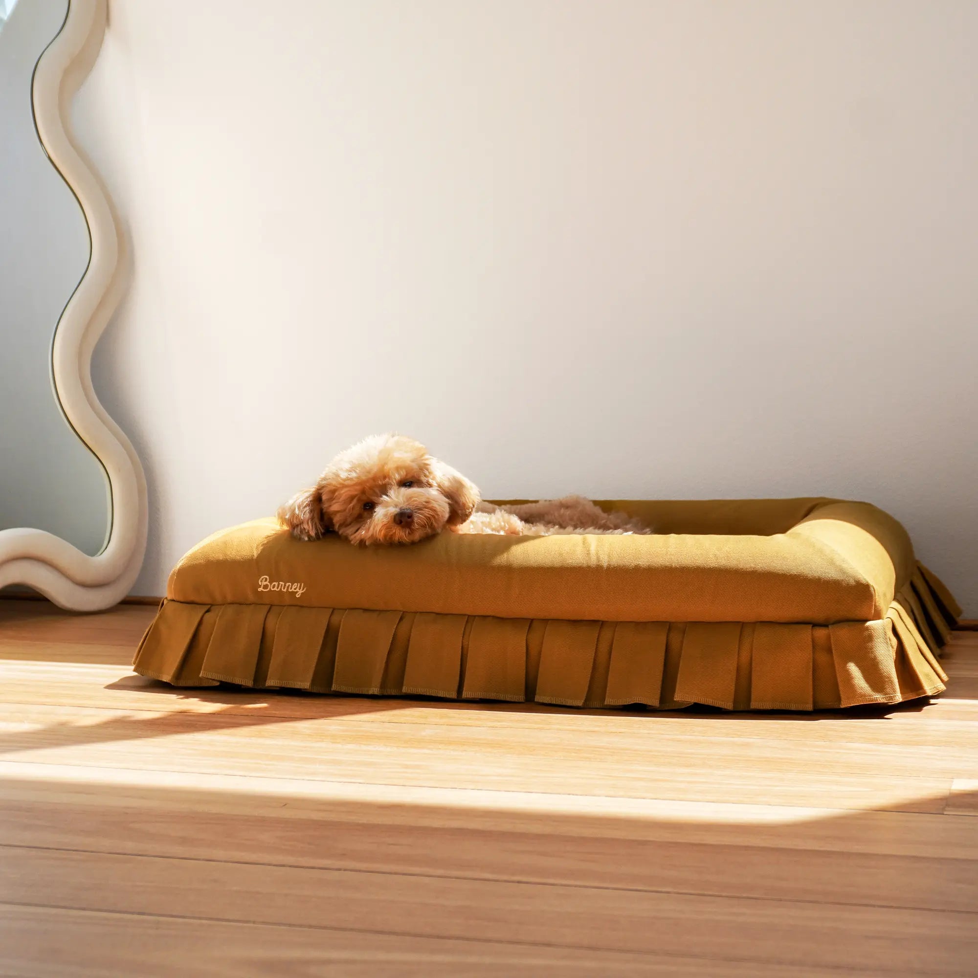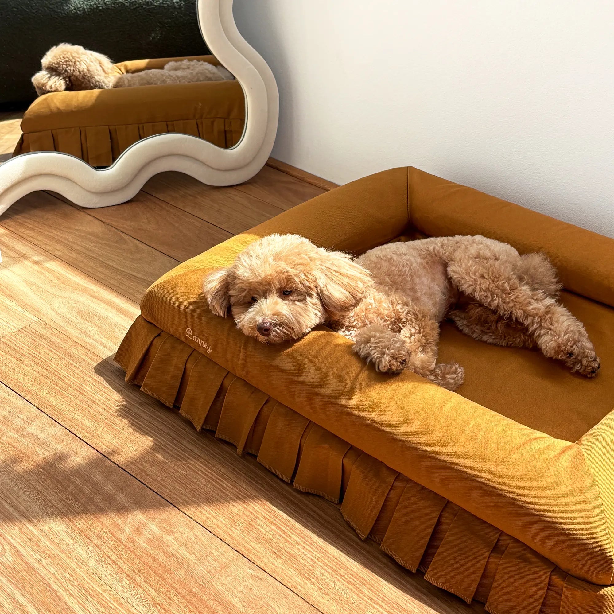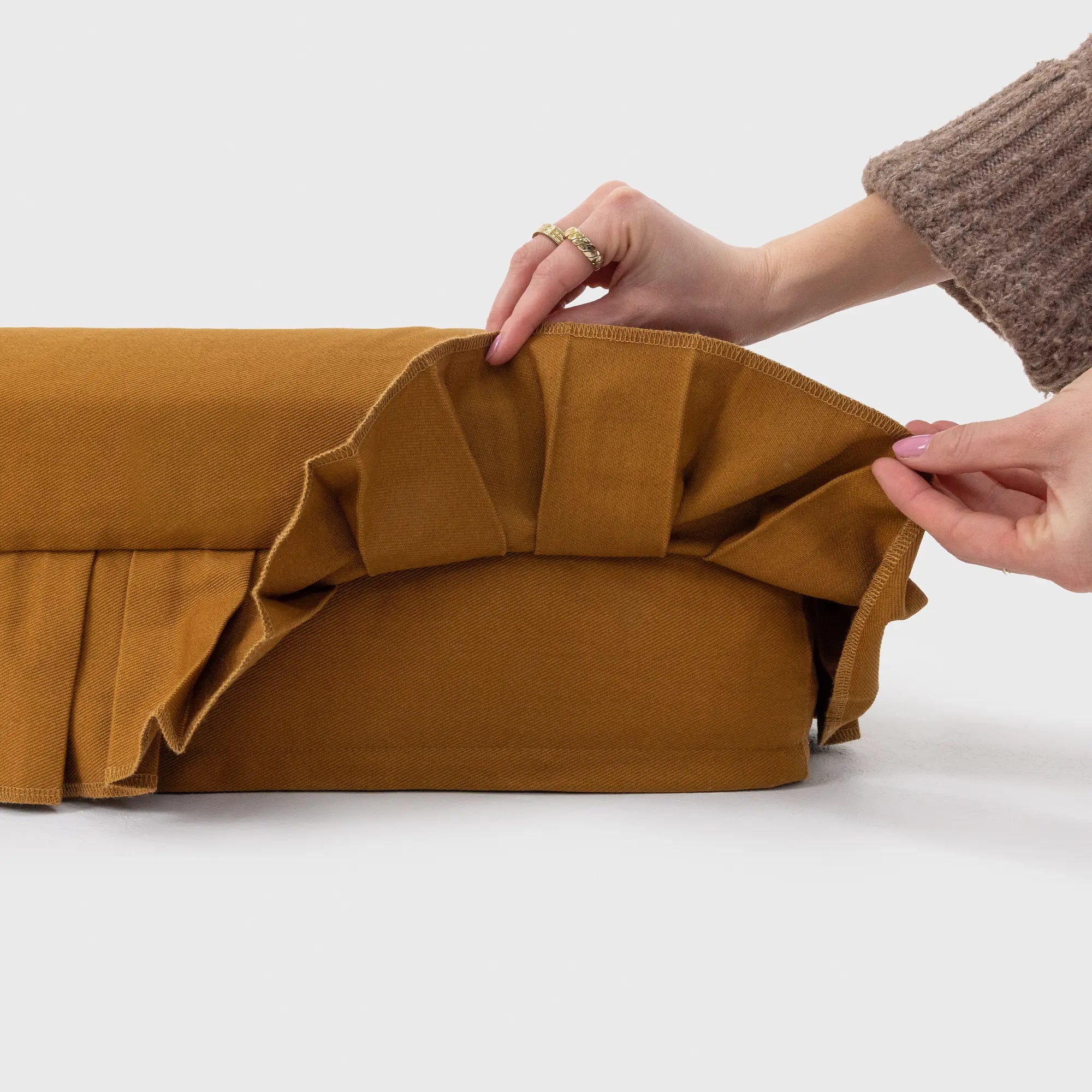 A note on our signature skirt: the semi-attached box pleat adds charm and structure, so we recommend this cover for gentle loungers rather than dogs who scratch or chew excessively.